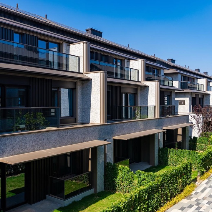 Located in Songjiang District, Shanghai, this residential project is surrounded by Peigou stream and Caijiabang Road. With a plot ratio of 1.1 and green space ratio of 35%, the land covers a site area of 33,539.2 m2 and a gross floor area of 32,528 m2. It is developed into low-density residences providing 262 units with various layouts such as low-rise apartments, villas and duplexes.